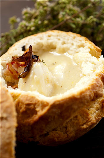 40 dkg na kockice sječenog fileta grdobine, 1,3 l ribljeg temeljca, 30 dkg kukuruzne krupice ili domaće pure, 3 režnja sjeckanog češnjaka, ½ dl maslinova ulja, 20 g maslaca, 1 žličica mažurana, 1 žlica peršina, sol, papar